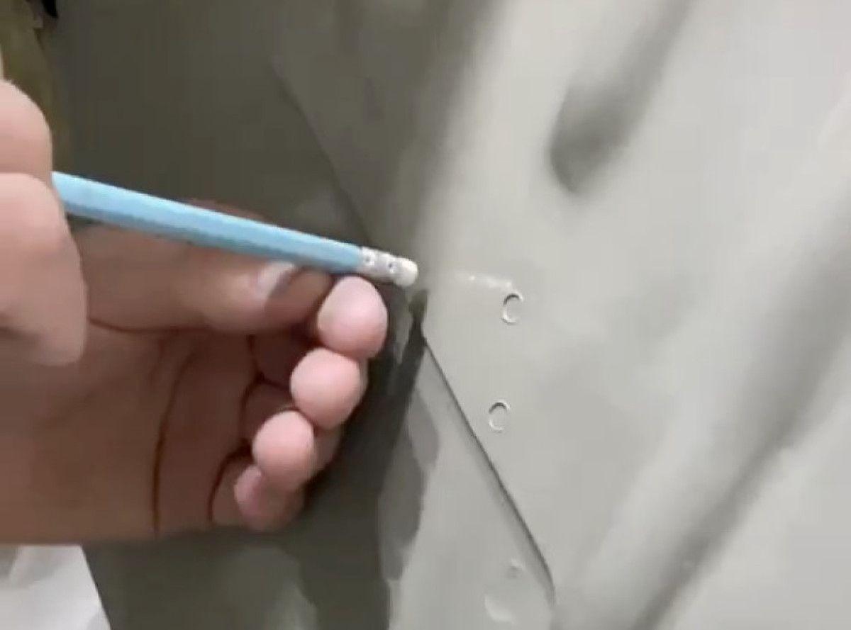 Sosyal medyada paylaşılan videoda bir kaporta ustasının, ağır hasarlı bir araçtaki puntaj izlerini kalem arkasında bulunan silgiyle yeniden oluşturduğu anlar yer aldı.